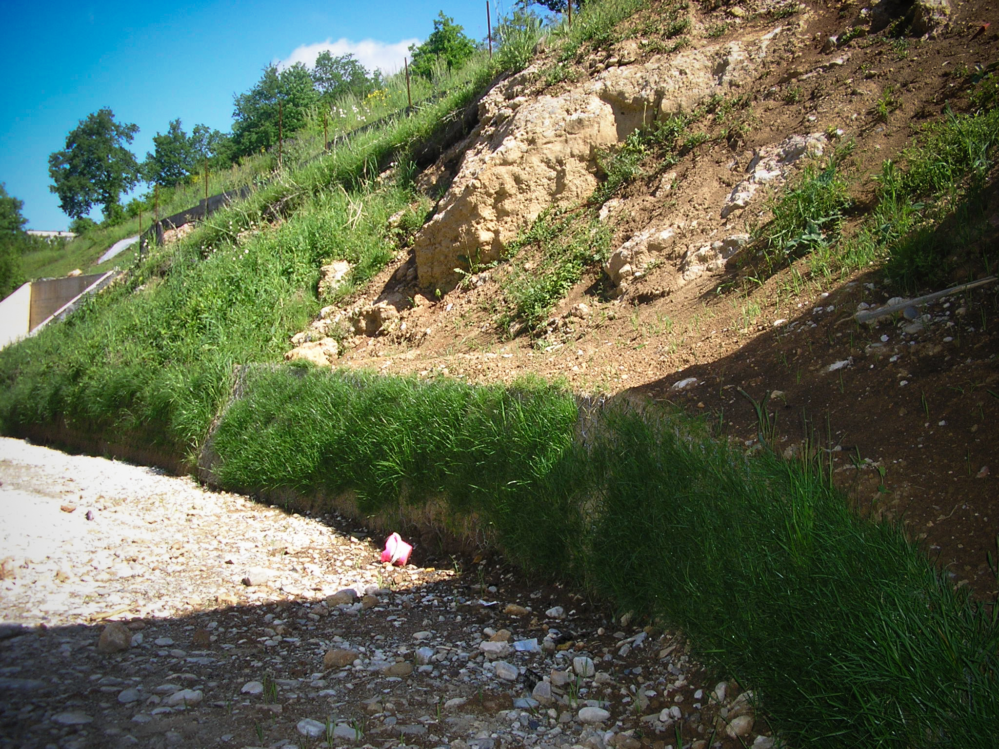 - Schutz von steilen Hängen durch Begrasung zur Verhinderung von weiterem Hang- und Erdrutsch sowie Steinschlag